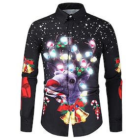 クリスマス メンズ クリスマス アニマルプリント シャツ シャツ サンタクロース ヘラジカ グラフィックプリント ターンダウン ブラック&レッド ブラック/ホワイト オリーブグリーン グリーン ブラック 3Dプリント ストリート 長袖 ボタンダウンプリント