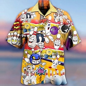 男性用 ボウリング球 シャツ アロハシャツ 半袖 シャツ 折襟 トロピカル風 ファッション ハワイアン ストリート カジュアル ハワイアン イエロー 黒/赤 ルビーレッド S M L