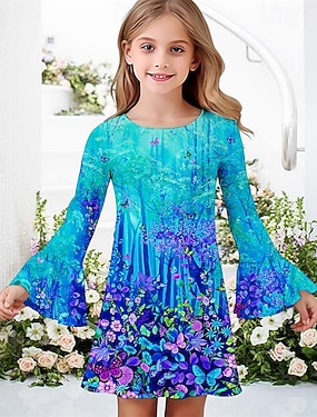 女子 3D フラワー ドレス ラッフルドレス 長袖 夏 春 バケーション 日常 祝日 美しい 甘い 子供 4〜12年 カジュアルドレス 膝丈 レギュラー