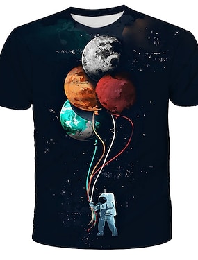 男の子 3D 宇宙飛行士 Tシャツ 半袖 3Dプリント 夏 春 活発的 スポーツ ファッション ポリエステル 子供 3〜12年 アウトドア 日常 屋内 レギュラー