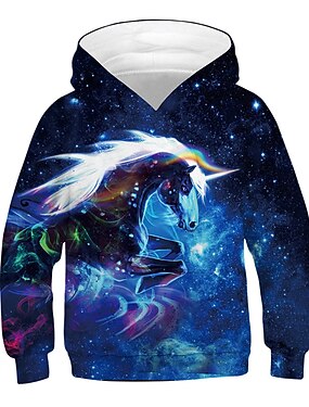 女の子 3D グラフィック カートゥン ユニコーン スウェット&スウェットパンツセット アンサンブル 長袖 3Dプリント 秋 冬 活発的 ファッション 日常 子供 3〜12年 アウトドア バケーション デート レギュラー