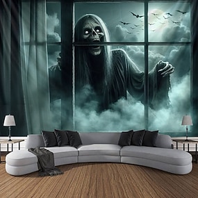 Halloween タペストリー バナー 壁掛け スケルトン 死神 3D ダークパンクゴシック パーティー 寮 撮影背景 装飾壁ドア背景