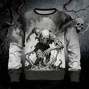 ハロウィーン 男の子 3D スカル スウェットシャツ 長袖 春 秋 ファッション ベーシック 子供 4〜12年 クルーネック アウトドア カジュアル 日常 レギュラー