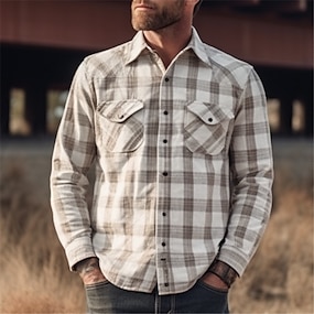 男性用 出演者 シャツ ウエスタンシャツ カウボーイシャツ 長袖 ヴィンテージ 洋式 アウトドア ワーク カジュアル/普段着 秋冬 折襟 ボタン プリント カーキ色