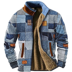 男性用 グラフィック パッチワーク スウェットシャツ ジップスウェットシャツ フリースの上着 アウター 長袖 トレーナー スタンド 日常 カジュアル ヴィンテージレトロ バケーション 祝日 お出かけ フリース 冬