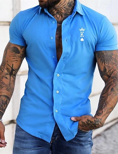 男性用 シャツ サマーシャツ カジュアルシャツ ビーチシャツ ボタンアップシャツ ルビーレッド ブルー カーキ色 ライトブルー 半袖 キング 幅264 x 長さ234cm 折襟 バケーション ハワイアン 衣類 ポリエステル ファッション カジュアル 快適