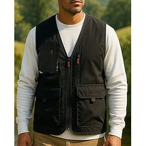 男性用 釣りベスト カーゴベスト ノースリーブ ベスト アウトドア 速乾性 複数のポケット ナイロン ブラック ホワイト アーミーグリーン 狩猟 釣り 登山