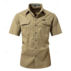 男性用 シャツ ワークウェアシャツ カジュアルシャツ ワークシャツ ボタンアップシャツ ブラック ブルー カーキ色 アーミーグリーン グレー 半袖 平織り ラペル バケーション 祝日 ポケット 衣類 コットン100% ファッション カジュアル 快適