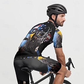 男性用 サイクリングジャージー イーグル 半袖 バイク Tシャツ ジャージー 3つのリアポケット付き マウンテンサイクリング 速乾性 人間工学デザイン ウィッキング 高通気性 スポーツ ワインレッド ブラック イエロー 衣類