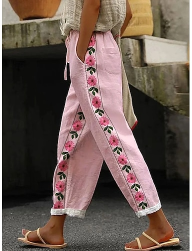 女性用 チノパン 旅行度假风 ヴィンテージ エスニック 足首丈 ハイウエスト フラワー グラフィック ポケット ソフト 屋外 高通気性 伸縮性なし アウトドア バケーション ストリート ライトピンク ディープパープル 夏 春 秋 レギュラー