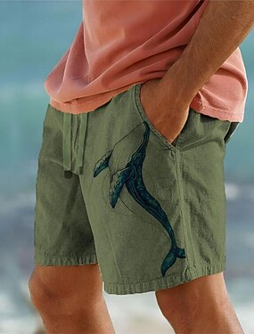男性用 動物 イルカ ショーツ サマーショーツ ビーチショーツ ミディアムウエスト ハワイアン カジュアル アウトドア 祝日 お出かけ ドローストリング 弾性ウエスト プリント デザイナー 衣類