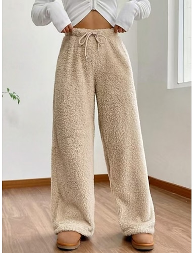女性用 フリースパンツ ワイドレッグ チノパン 旅行度假风 ファッション ベーシック 全長 ハイウエスト 平織り 弾性ウエストバンド 快適 ソフト 伸縮性あり アウトドア ストリート ブラック ベージュ コーヒー グレー 春 冬 レギュラー