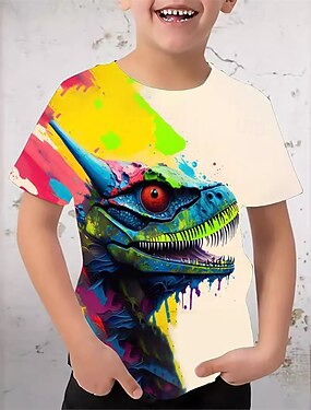 男の子 3D 動物 恐竜 Tシャツ Tシャツ 半袖 夏 春 ファッション ベーシック 子供 4〜12年 クルーネック アウトドア カジュアル 日常 レギュラー