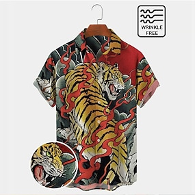 男性用 動物 虎 シャツ アロハシャツ 半袖 シャツ 折襟 トロピカル風 ファッション ハワイアン アウトドア ストリート ハワイアン ルビーレッド S M L