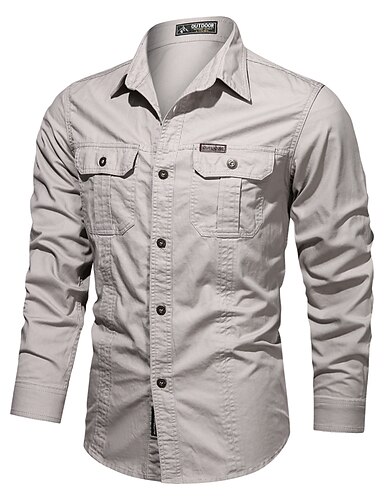 男性用 シャツ ワークウェアシャツ ワークシャツ ボタンアップシャツ カーゴシャツ ブラック アーミーグリーン カーキ色 ベージュ 長袖 平織り ソリッド カラー 日常 衣類 コットン100% ベーシック