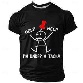 面白い言葉遊び「助けて!画鋲の下にいる」ユーモアTシャツのメンズショートスリーブグラフィックTシャツ
