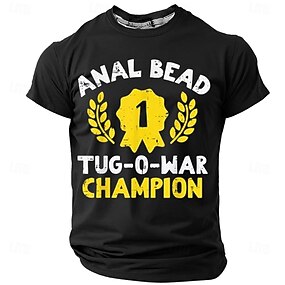男性用短袖面白いTシャツ『アナルビーズ綱引きチャンピオン』グラフィックTシャツ大人のユーモアノベルティトップ