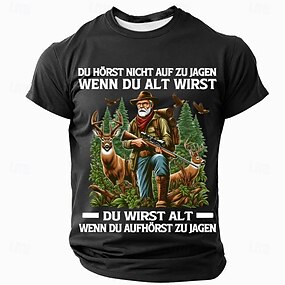 男性用ハンターグラフィックTシャツ - "年を取っても狩りを止めるわけではない、止めた時に年を取る"ショートスリーブアウトドアTシャツ
