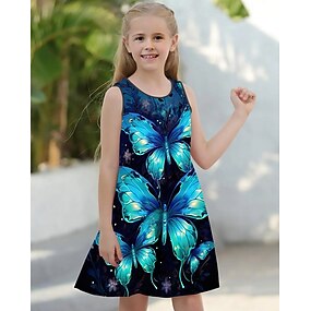 女子 3D バタフライ ドレス ノースリーブ 夏 春 バケーション 日常 祝日 プリンセス 美しい 甘い 子供 4〜12年 カジュアルドレス A ラインドレス 膝丈 レギュラー