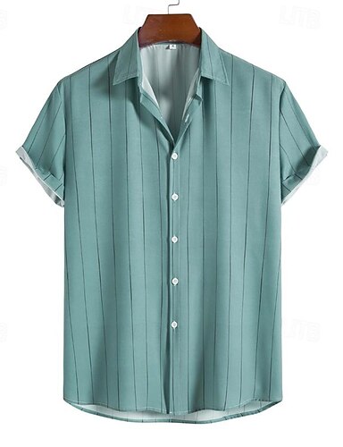 男性用 シャツ サマーシャツ カジュアルシャツ ビーチシャツ ボタンアップシャツ ライトグリーン ブルー グリーン グレー 半袖 縞柄 ラペル バケーション ハワイアン 衣類 ポリエステル ファッション カジュアル 快適