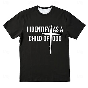 男性用 レタード 十字架 イエス Tシャツ ティートップ コットン100% 半袖 グラフィック シャツ ブラック アーミーグリーン ダークブルー 快適なTシャツ ストリート スポーツ・アウトドア ファッションデザイナーの衣類