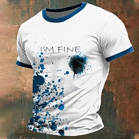 男性用 血しぶき 血痕 Tシャツ 半袖 Tシャツ 3Dプリント クルーネック シャツ デザイナー スチームパンク カーニバル パーティー ストリート ルビーレッド ブルー グリーン 夏 春 衣類 S M L XL XXL XXXL