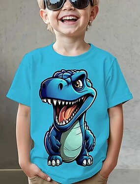 男の子 3D グラフィック 動物 恐竜 Tシャツ 半袖 夏 春 ファッション ベーシック 子供 4〜12年 クルーネック アウトドア カジュアル 日常 レギュラー