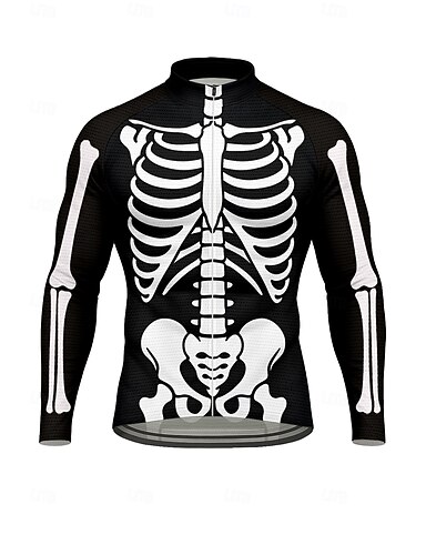 男性 トップス サイクリングジャージー グラフィック スカル ハロウィーン 長袖 バイク ジャージー トップス 3つのリアポケット付き マウンテンサイクリング ロードバイク サンケア 日焼け防止 速乾性 反射性ストリップ スポーツ ブラック 衣類