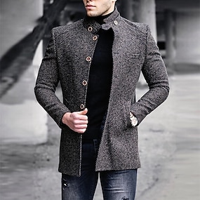 男性用 ピーコート トレンチコート バケーション 日常 秋 冬 綿80% 保温 アウターウェア 衣類 ファッション クラシック 平織り ポケット スタンドカラー シングルブレスト