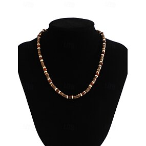 木とターコイズのアクセントが付いたメンズナチュラルビーズネックレス。カジュアルな服装、夏のフェスティバル、ビーチウェアにぴったりのボヘミアンサーフスタイルのジュエリー。