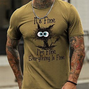 メンズ面白いストレス猫グラフィックTシャツ - '大丈夫、私は大丈夫、すべてが大丈夫' 皮肉なライフスタイルユーモアTシャツ