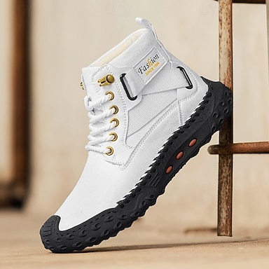 メンズホワイトハンドメイドハイキングブーツ - 耐久性と快適性を兼ね備えたフェイクレザーデザイン。アウトドアアドベンチャーや普段使いに最適です。