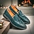 メンズグリーンクロコダイルテクスチャタッセルローファー - スタイリッシュなクリスマスカジュアルルック、ホリデーパーティーやお祝いのお祝いに最適