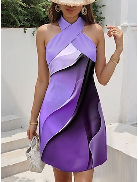 女性用 ミニドレス T シャツドレス サンドレス A ラインドレス 旅行度假风 カジュアル お出かけ レギュラー オンブル’ グラフィック 幾何学模様 ノースリーブ ホルターネック ピンク ブルー パープル グリーン 夏