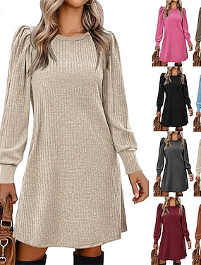 女性用 ミニドレス カジュアルドレス エレガント ファッション 近代の アウトドア 日常 お出かけ レギュラー 平織り 長袖 クルーネック ブラック ピンク ルビーレッド ブルー 春 秋
