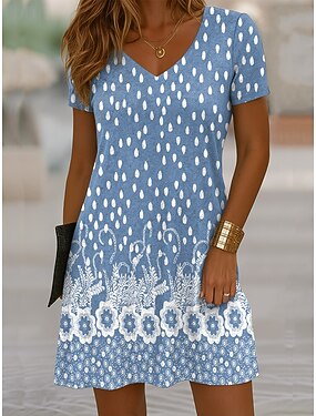 女性用 ミニドレス T シャツドレス A ラインドレス サマードレス エレガント 旅行度假风 カジュアル レギュラー フラワー グラフィック 半袖 Vネック ピンク ブルー パープル グリーン 夏 春
