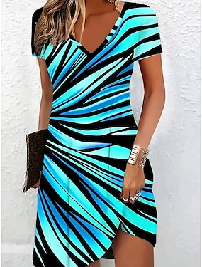 女性用 ミニドレス ボディコン T シャツドレス シフトドレス サマードレス 旅行度假风 カジュアル レギュラー グラフィック 縞 抽象的 半袖 Vネック パープル ライトブルー 夏 春 秋