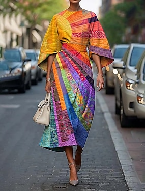 女性用 ミディドレス シースドレス ボディコンドレス フォーマル ボヘミアン 日常 レギュラー オンブル’ グラフィック 抽象的 半袖 クルーネック ルビーレッド ブルー パープル グリーン 夏 春