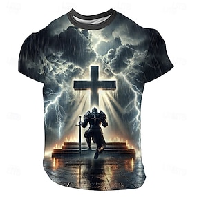 男性用 十字架 Tシャツ 半袖 Tシャツ 3Dプリント クルーネック シャツ 3Dプリント カジュアル アウトドア ストリート 青3# 青2# 青1# 夏 春 衣類 S M L XL XXL 3XL