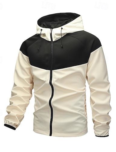 男性用 アウトドアジャケット ウィンドブレーカー ハイキング ジャケット バケーション 日常 高通気性 ポケット スプライス 春 秋 カラーブロック ファッション クラシック スタンド レギュラー ブラック ライトグレー アーミーグリーン ダークブルー ダックグレー ジャケット