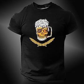 男性用 スカル オクトーバーフェストビール Tシャツ 半袖 Tシャツ 3Dプリント クルーネック シャツ ヴィンテージ クール パーティー 祝日 オクトーバーフェスト イエロー オレンジ 夏 春 衣類 S M L XL XXL XXXL