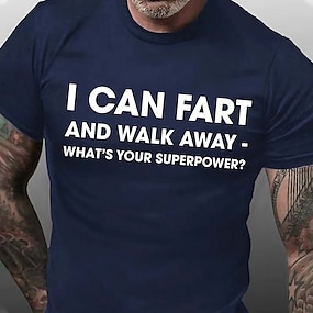 男性の面白いグラフィックTシャツ 『私はおならができて歩き去ることができる - あなたのスーパーパワーは何ですか?』ライフスタイル ギャグギフト用の短袖ユーモアTシャツ