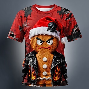 クリスマス 男性用 ジンジャークッキー Tシャツ 半袖 Tシャツ 3Dプリント クルーネック シャツ 日常 デザイナー アーティスティック バケーション パーティー ストリート ルビーレッド オールシーズン 衣類 S M L XL XXL XXXL