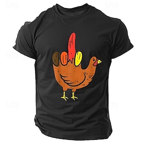 男性用 動物 おかしい Turkey Tシャツ ティートップ コットン100% 半袖 グラフィック シャツ ブラック アーミーグリーン ダークブルー 快適なTシャツ ストリート スポーツ・アウトドア ファッションデザイナーの衣類