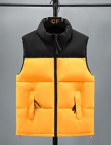 男性用 パファーベスト ジレ キルティングベスト 日常 デート バケーション ファッション カジュアル 秋冬 ジッパーポケット ポリエステル 保温 快適 カラーブロック ジッパ- スタンド レギュラー オレンジ ライトグレー ダックグレー ベスト