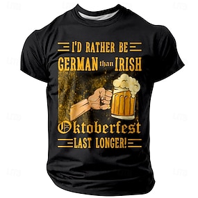 男性用Tシャツ短袖グラフィック面白いオクトーバーフェストビールユーモア「ドイツ人の方がアイルランド人より長持ちする」