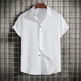 男性用 シャツ カジュアルシャツ ボタンアップシャツ 平織り バケーション ストリート ブラック ホワイト ピンク ワイン 半袖 ラペル 夏 衣類 ボタンダウン