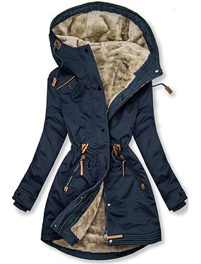 女性用 冬物コート 冬物ジャケット パーカー 防風 保温 ジッパー ポケット ドローストリング 毛皮の襟 エレガント ストリートスタイル 平織り ストリート カジュアル デイリーウェア ジッパ- レギュラー パーカー レギュラー 長袖 アウターウェア ブラック ダークグリーン ダークブルー 秋 冬