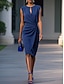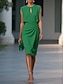 女性用 ミニドレス ボディコンドレス セミフォーマルドレス オフィス スリム 平織り ノースリーブ クルーネック ブラック ホワイト ルビーレッド グリーン 夏 春