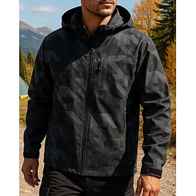 男性用 ウィンドブレーカー ソフトシェルジャケット ハイキング ジャケット アウトドア 防水 防風 ハイキングの服装 ハイキングウェア 春 秋 トップス キャンプ / ハイキング / ケイビング ランニング ダークグレー ブラック ホワイト